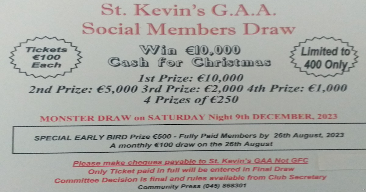 it's back, our 400 club draw tickets are now on sale. You can purchase tickets in-app or on our website. https://stkevinsgfckildare.clubzap.com/products