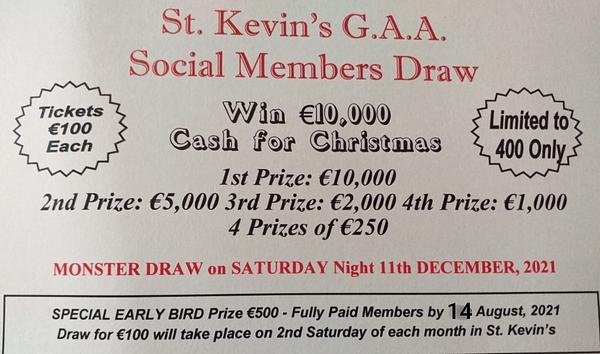 There are only hours to go, who are going to be or €10,000 or €5,000 or €2,000 or €1,000 or one of the four €250 prize winners. You just never know. Come down tonight and see the draw live in the clubhouse bar at 9 p.m., Join in the excitement as to who will win. The bar has put on music and finger food for the night. So it's going to be a Christmas cracker of a night. If you can't make it, we will be streaming the draw live here on Facebook around 9 p.m. approximately. Good luck to all our entrants.